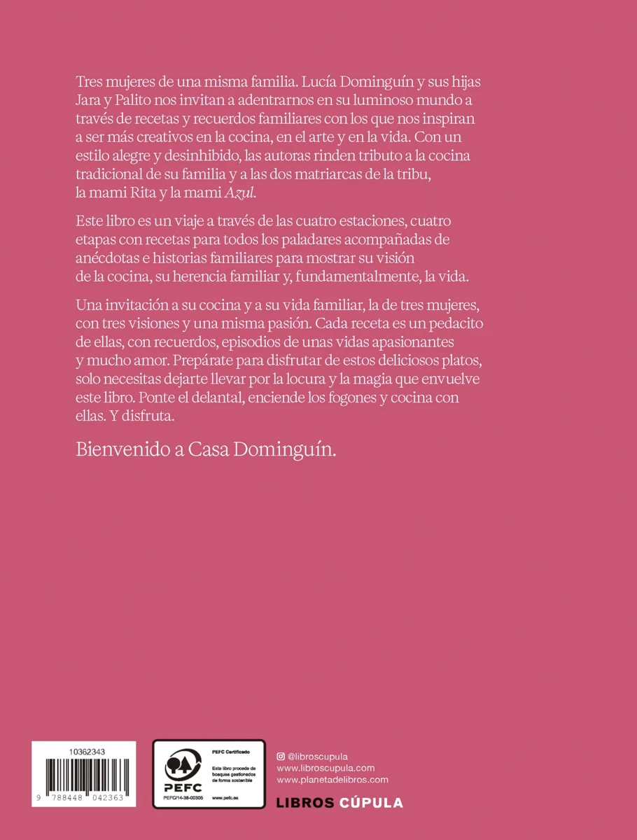 Tres mujeres de una misma familia. Lucía Dominguín y sus hijas Jara y Palito nos invitan a adentrarnos en su luminoso mundo a través de recetas y recuerdos familiares con los que nos inspiran a ser más creativos en la cocina, en el arte y en la vida. Con un estilo alegre...