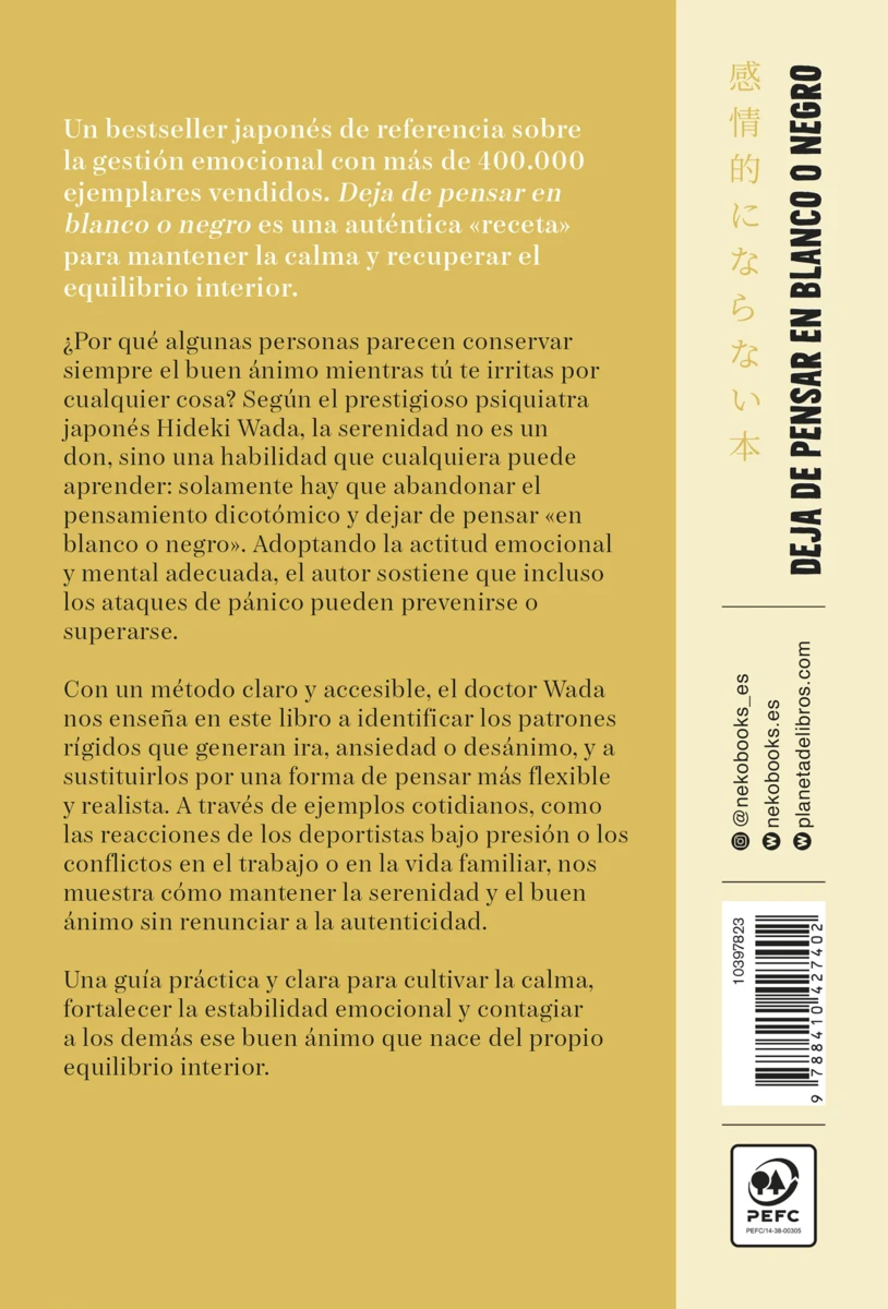 Un bestseller japonés de referencia sobre la gestión emocional con más de 400.000 ejemplares vendidos. Deja de pensar en blanco o negro es una auténtica «receta» para mantener la calma y recuperar el equilibrio interior.