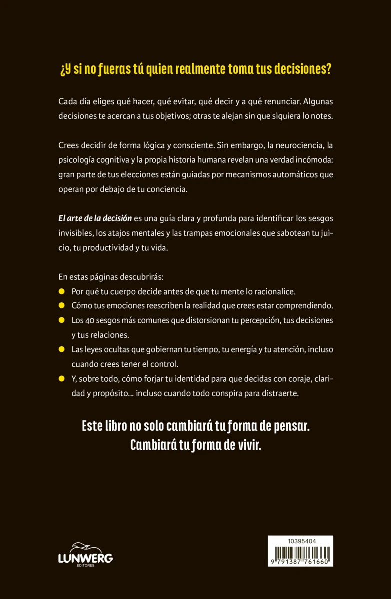 El arte de la decisión es una guía profunda y práctica que revela cómo las resoluciones humanas —que creemos racionales— están en realidad moldeadas por emociones, sesgos cognitivos, heurísticos y atajos mentales invisibles. A través...