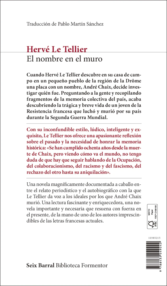 Contraportada El nombre en el muro