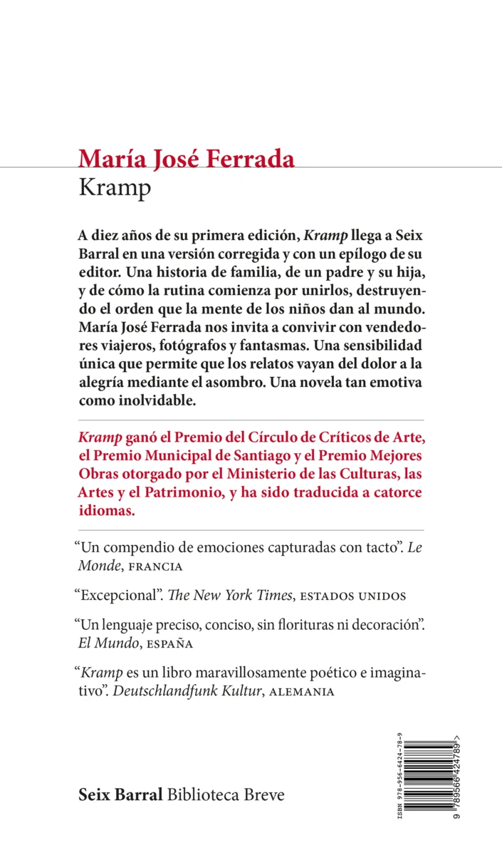 A diez años de su primera edición, Kramp llega a Seix Barral con un epílogo de su editor. Una historia de familia, de un padre y su hija, y de cómo la rutina comienza por unirlos, destruyendo el orden que la mente de los niños da al mundo. María José Ferrada nos invita a convivir con vendedores viajeros, fotógrafos y fantasmas. Una sensibilidad única que permite que los relatos vayan del...